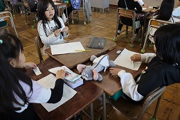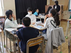 学活では、チームで給食当番や掃除の役割を話し合いました。