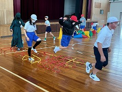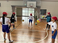 また、体育の授業では、さまざまな体つくり運動を行いました。久しぶりの体育とあって、多くの子たちが積極的に体を動かしていました。