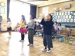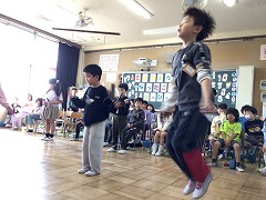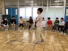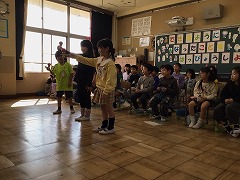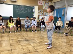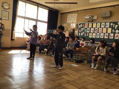 2つのグループに分かれてのボディーパーカッションや「みんなでグー・チョキ・パー」や「世界中の子どもたちが」を発表しました。