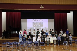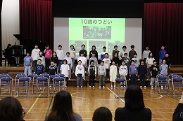 本日は十歳のつどいにご参加していただきありがとうございました。十歳のつどいでは、子どもたちの精一杯の姿を見ていただきました。今日の姿を見ながら、この子たちは本当に大きくなったなと、胸がいっぱいになりました。そして、合唱の姿こそが、学年目標「ともに伸びる」の形だったと感じています。