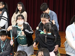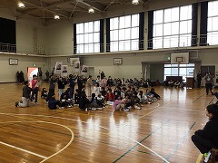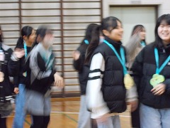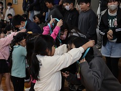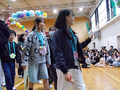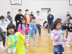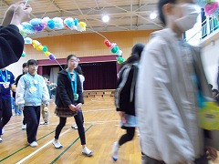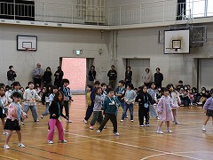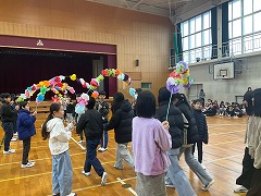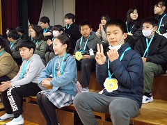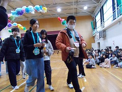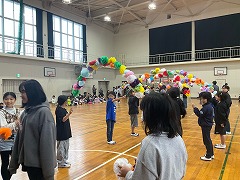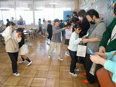 1年生は、ダンスと「ありがとう」の気持ちを6年生に伝え、メダルをプレゼントしました。