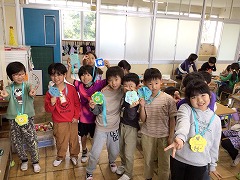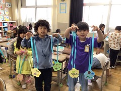 6年生を送る会で、6年生に渡すメダルを作りました。