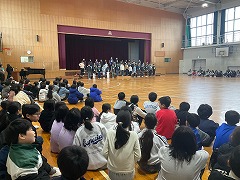 6年生を送る会を行いました。「感謝の気持ちを伝えること」と「6年生から受け継ぐこと」を目的に取り組みました。これまで学校を引っ張ってきてくれた6年生への感謝の気持ちを、自分たちなりの言葉や態度で表そうと、子供たちは準備の段階から真剣に取り組んできました。当日は、6年生への「ありがとう」の思いを込めて、心を合わせてダンスの発表することができました。また、6年生の姿を目にし、「これからは自分たちが学校を支えていく」という意識も高まったように感じます。