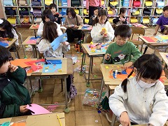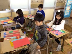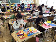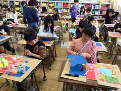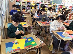 本日は授業参観にご参加いただきありがとうございました。子どもたちは、難しい所を手伝ってもらい、作業がかなり進みました。出来上がった作品は、持ち帰ったときにまた見てあげてください。