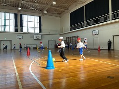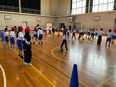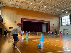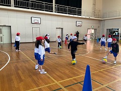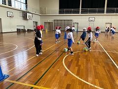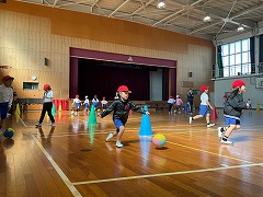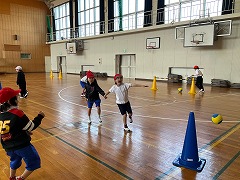 体育の時間には、ボール蹴りゲームに取り組んでいます。