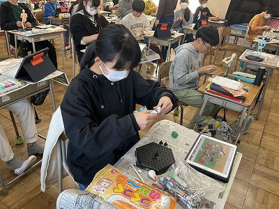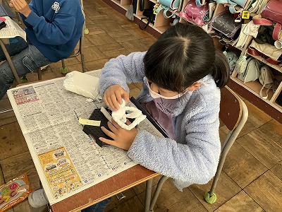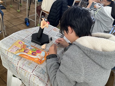 2組は図工の様子を紹介します。歴史上の人物を紙粘土を使って作っています。ポーズや表情など細部までこだわりながら取り組むことができています。