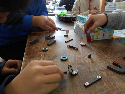磁石の性質をうまく利用して、磁石を使ったおもちゃで遊びました。