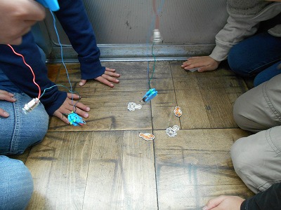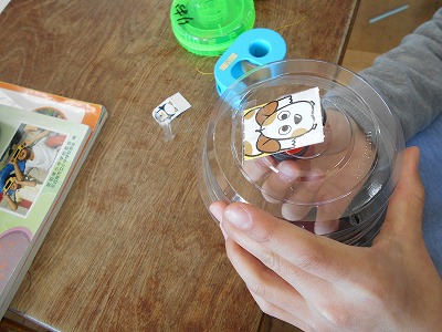 「さかなつり」 豆電球と磁石をつかったおもちゃを作りました。うまく魚がくっつくと、豆電球が光ります。これはなかなか難しかったです。