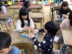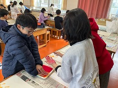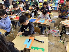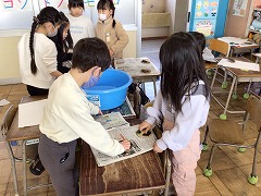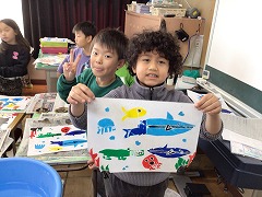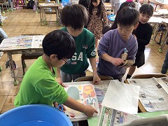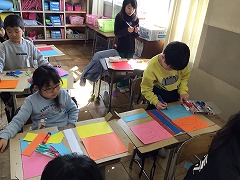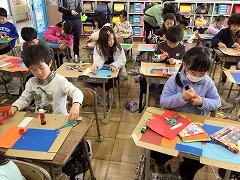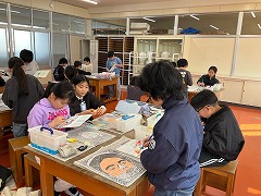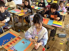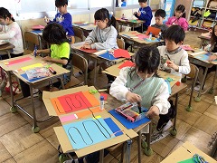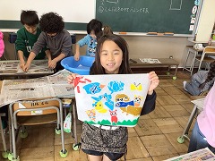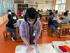 図工では、版画に色を付けました。とってもいい出来栄えになりました。10才のつどいで飾りたいと思います。