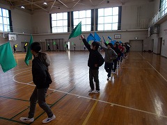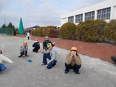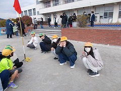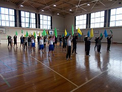 交通指導員さん・スクールガードさんたちの前で、感謝の気持ちを述べ、ダンスを踊りました。最後は、みなさんに喜んでいただけるようにと心を込めて作った