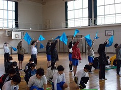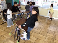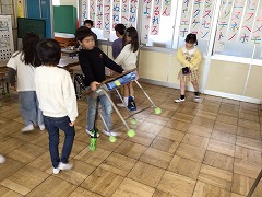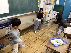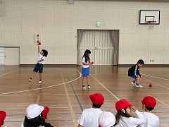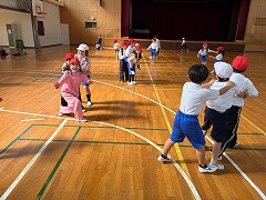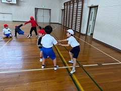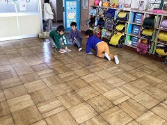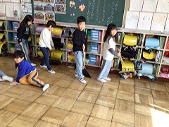 体育の時間には、動物や遊園地の乗り物になりきりました。