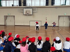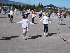 全員で前跳び、後ろ跳び、交差跳び、二重跳びの4種目に挑戦し、笛が鳴るまで跳んでいた児童が入賞となります。