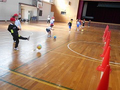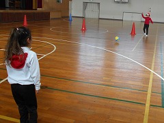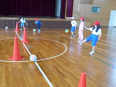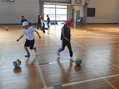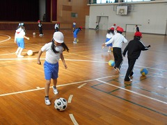 体育の時間には、「ボール蹴りゲーム」に取り組んでいます。