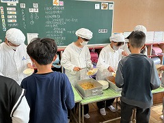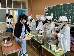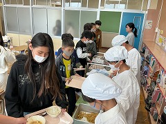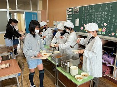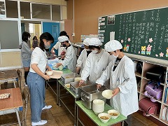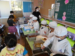 給食の時間には、それぞれの役割に分れて素早く準備を進めています。