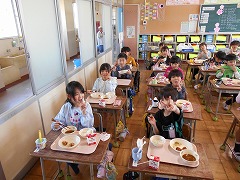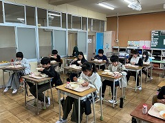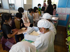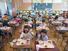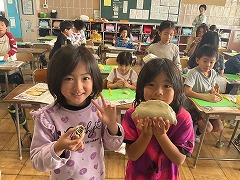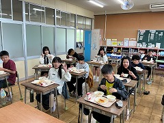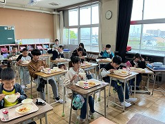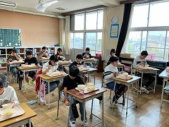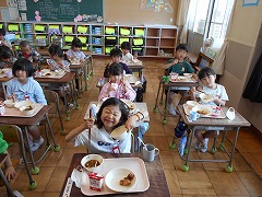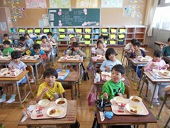 今日から本格的に給食がスタートしました。初めての給食当番も上手に配膳できました。みんな「おいしい!」と多くの子が完食でき、食缶は全て空にできました!