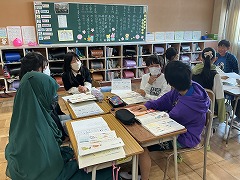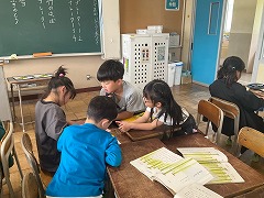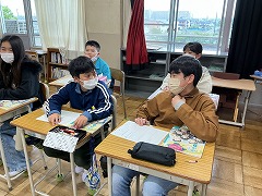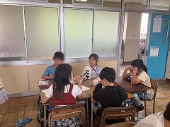 学活では、チームで給食当番や掃除の役割を話し合いました。