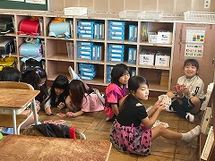 好きなものは、動物、食べ物、キャラクター、ゲームなどいろいろなものが出てきて、みんな「何が好きなのかな」と興味をもって聞いていました。