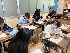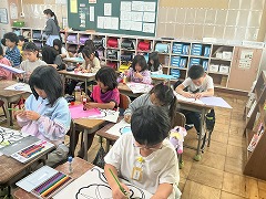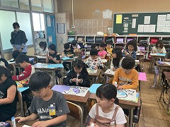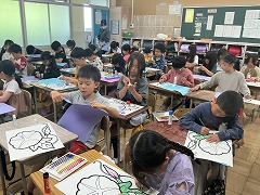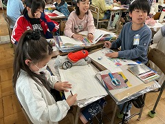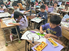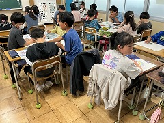 生活の授業では、1年生との学校探検に向けて、各特別教室の看板を作りました。チームの仲間と話し合いながら描き進めることができていました。