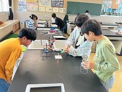 理科の時間には、集気びんの中でろうそくを燃やし続けるには、どうすればよいのか実験を行っていました。