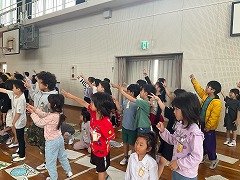 また、体育の授業では、さまざまな体つくり運動を行いました。久しぶりの体育とあって、多くの子たちが積極的に体を動かしていました。