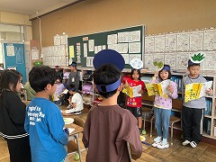 国語では、音読劇の練習をしました。チームごとに見せ合いました。