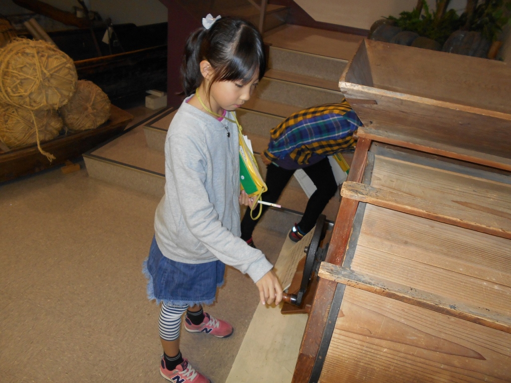 館内では、昔の道具を見学したり、体験したりしました。しおりに見たり、聞いたりしたことを書き残しました。