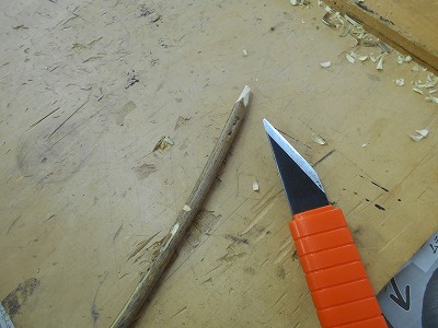 小刀を使って、木の枝を削りました。