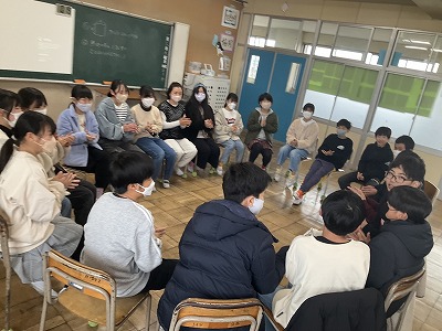 2組はプロジェクト活動の様子を紹介します。レクを企画したり、制作した動画を見せたりしています。参加する側も場を盛り上げるなど、