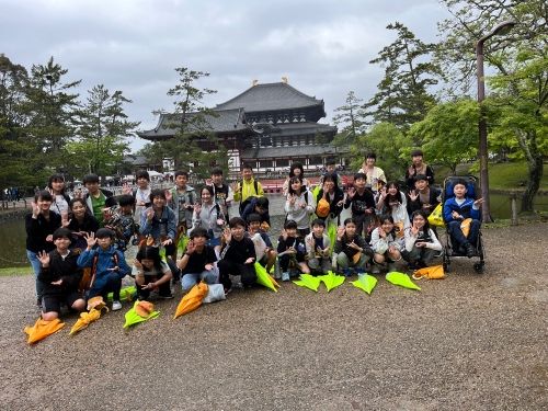 東大寺の鏡池の前で集合写真を撮りました。