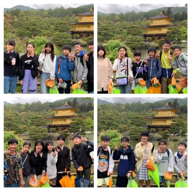 光り輝く金閣寺を見て、子どもたちは目を輝かせていました。