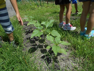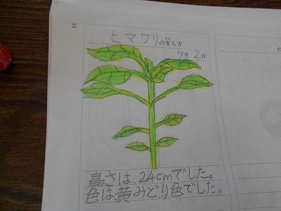 ヒマワリは、背が高くなってきました。25センチくらいです。