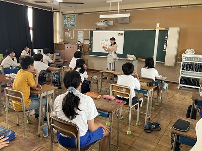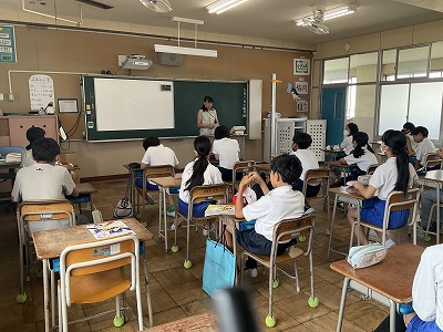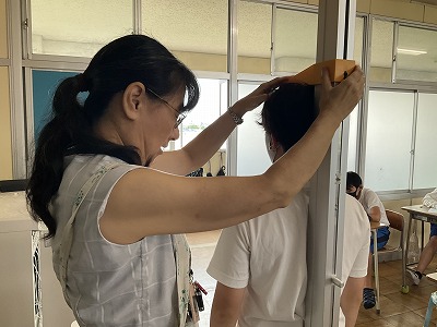 2組は保健指導の様子を紹介します。けがをした時の応急処置について学びました。その後、発育測定をして自分たちの成長を実感しました。