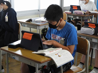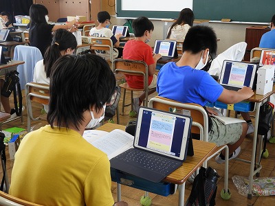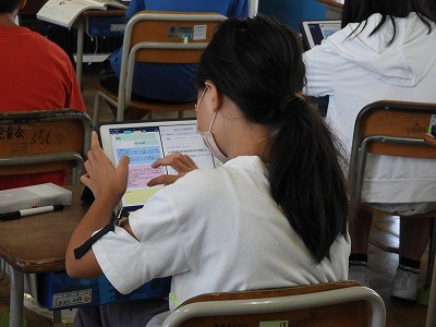 1組は国語の「私たちにできること」のまとめの様子を紹介します。今回はインターネットと新聞から集めた情報を元に、自分が興味をもった環境問題について考え、ロイロノートにまとめました。これまで知っていたことでも、さらに詳しく調べてみると新しい発見がありました。発表を聞いたり、完成したレポートを見ることでさらに理解が深まりますね。
