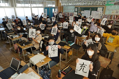 書写の時間に、自分にとっての「今年の漢字」を書きました。