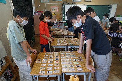 社会の学習では、歴史トランプを使って、カルタに取り組んでいます。
