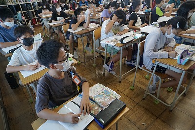 ☆避難訓練を終えて、災害時の非常食について、自主学習に取り組む児童がいました。