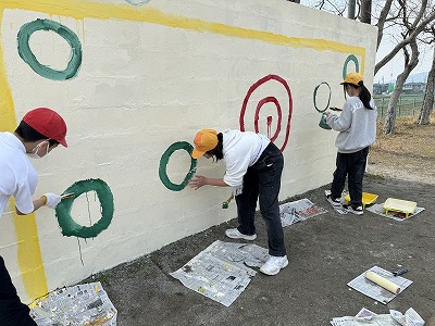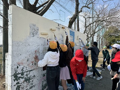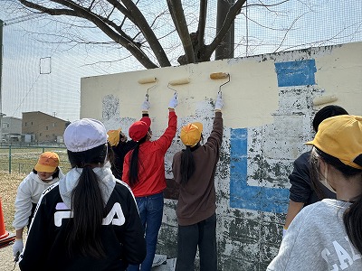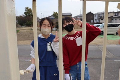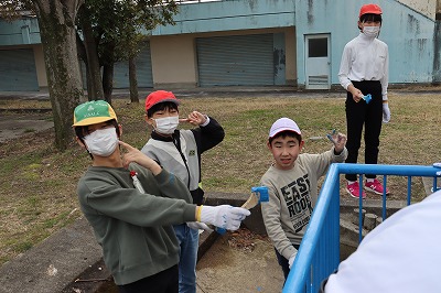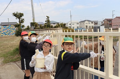 3・4時間目を使って奉仕作業として、的当て板・東門・観察池の柵のペンキ塗りを行いました。みんな一生懸命に作業をしていました。