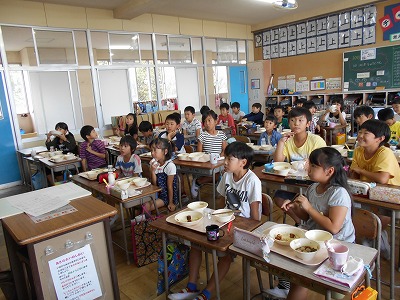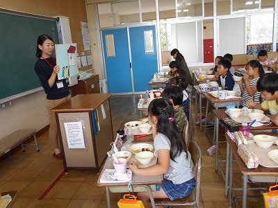 愛西市給食センターの栄養教諭の岩花先生から栄養指導がありました。