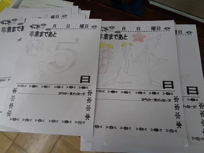 カウントダウンカレンダーを作成している様子を紹介します。卒業式まであと2ヶ月を切りました。それぞれ自分の思いを込めて書いています。