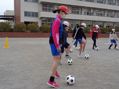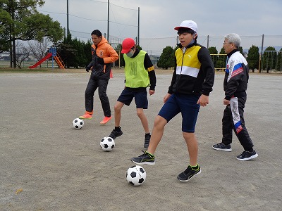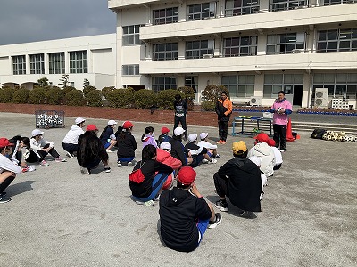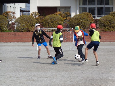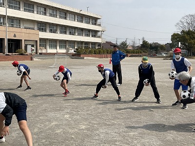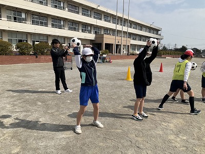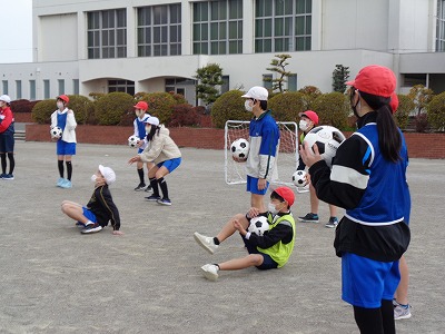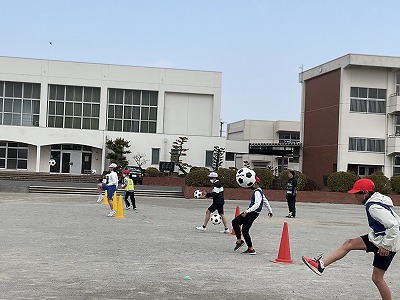 今日は、ヴィアティン三重の方をお招きし、6年生を対象にサッカー教室をしていただきました。サッカーに慣れ親しんだ子も、あまりやったことがないという子も、みんなが楽しめるサッカー教室でした。