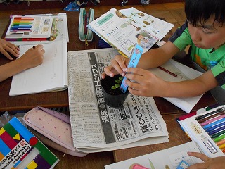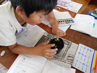理科の学習で、先月ホウセンカ、ピーマン、ヒマワリの種をまきました。