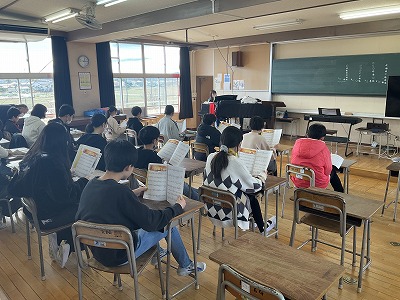 2組は音楽の様子を紹介します。歌詞の意味を感じながら歌の練習に取り組みました。一人一人の合唱に向き合う気持ちが高まってきていると感じました。