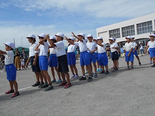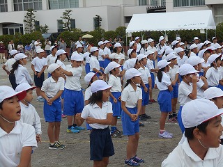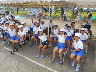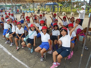 児童席にて。「がんばるぞー!」