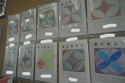 図工の学習で、直線を重ねて作品をつくりました。