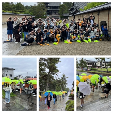 雨が降っていますが、集合写真を撮る時になるとなぜか小雨になりました。