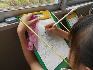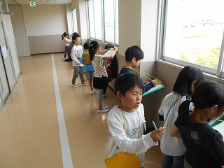 学校から見たまちのようすをスケッチしています。