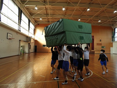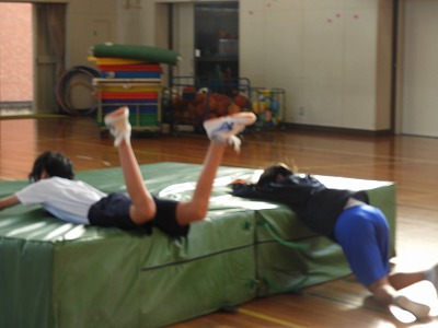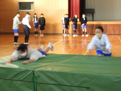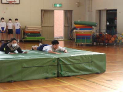 1組は体育の授業の様子を紹介します。少し前の体つくり運動で、セーフティマットに滑り込んで、どれだけマットを動かせるかを競争しました。どうすればうまくいくか話し合いながら取り組んでいました。準備や片付けもみんなで楽しくやっている姿もとてもいいなぁと思いました。そして今やっているハードル走の授業もあと数回となりました。今回は、ウォーミングアップの大縄跳びの様子も載せました。