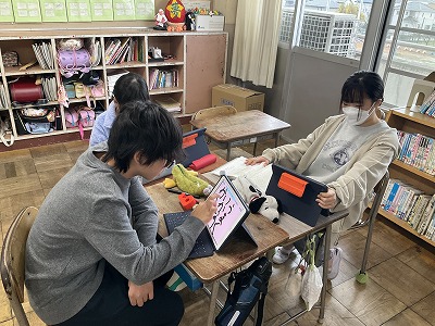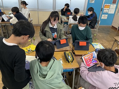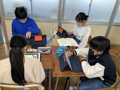 2組は国語の授業の様子を紹介します。自分の座右の銘にしていきたい言葉を選びました。自分を励ましたり、自分の目標としたりする言葉を、ことわざや偉人の名言から選びました。自分の経験と結びつけながら文章にまとめていきます。