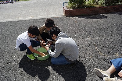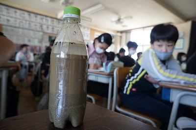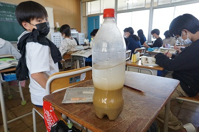 理科の学習では、地層のでき方を調べる実験を行いました。