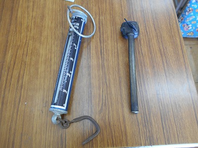 左は、重さを測る秤です。実際に物を測ることができました。右は、中に筆が入っていて墨を入れて字を書いたようです。矢立という名前みたいです。